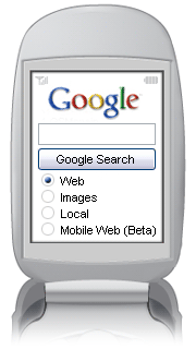Search the Web – At the grocery store and need to find the ingredients for chicken salad? Just query "chicken salad ingredients" on your cell phone's mobile Web browser to search through more than 8 billion pages for the recipe that will wow your taste buds. Learn more »» Search Images – Is that the Empire State building or the Chrysler building? Search more than 2 billion images and get the one you need on your phone with Google Image Search. Learn more »» Search for Local InformationNew! – Visiting Boston for the first time and need to find the best seafood restaurant? Use Google Local on your mobile phone to find local business listings, maps and driving directions — anytime, and from anywhere. Learn more »» Search the Mobile WebNew! – Access the mobile web which is made up of sites that are specifically designed to fit your phone screen. Learn more »»